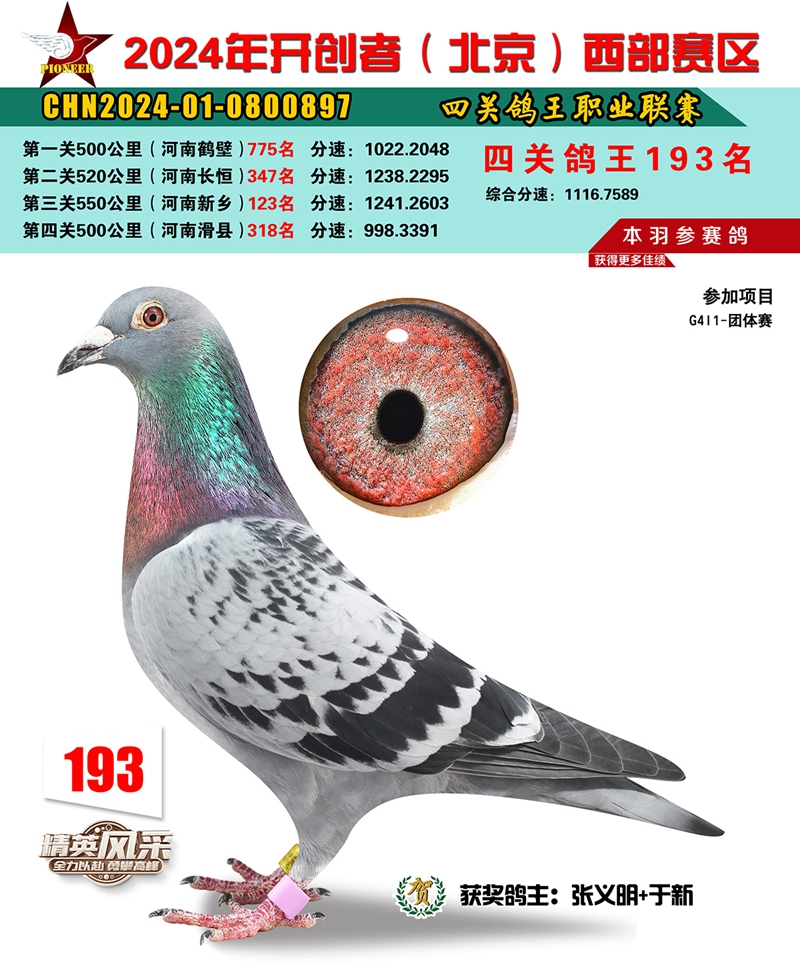 2024年开创者西部四关鸽王193名