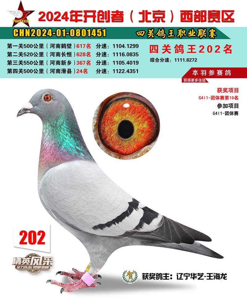 2024年开创者西部四关鸽王202名