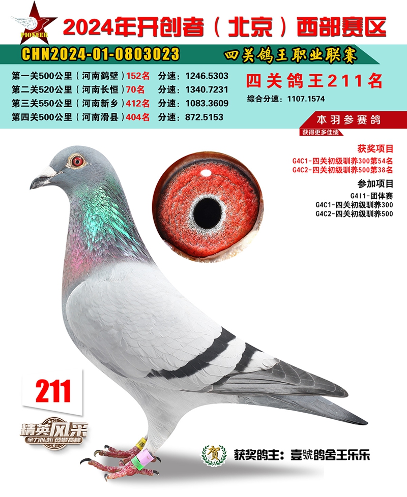 2024年开创者西部四关鸽王211名