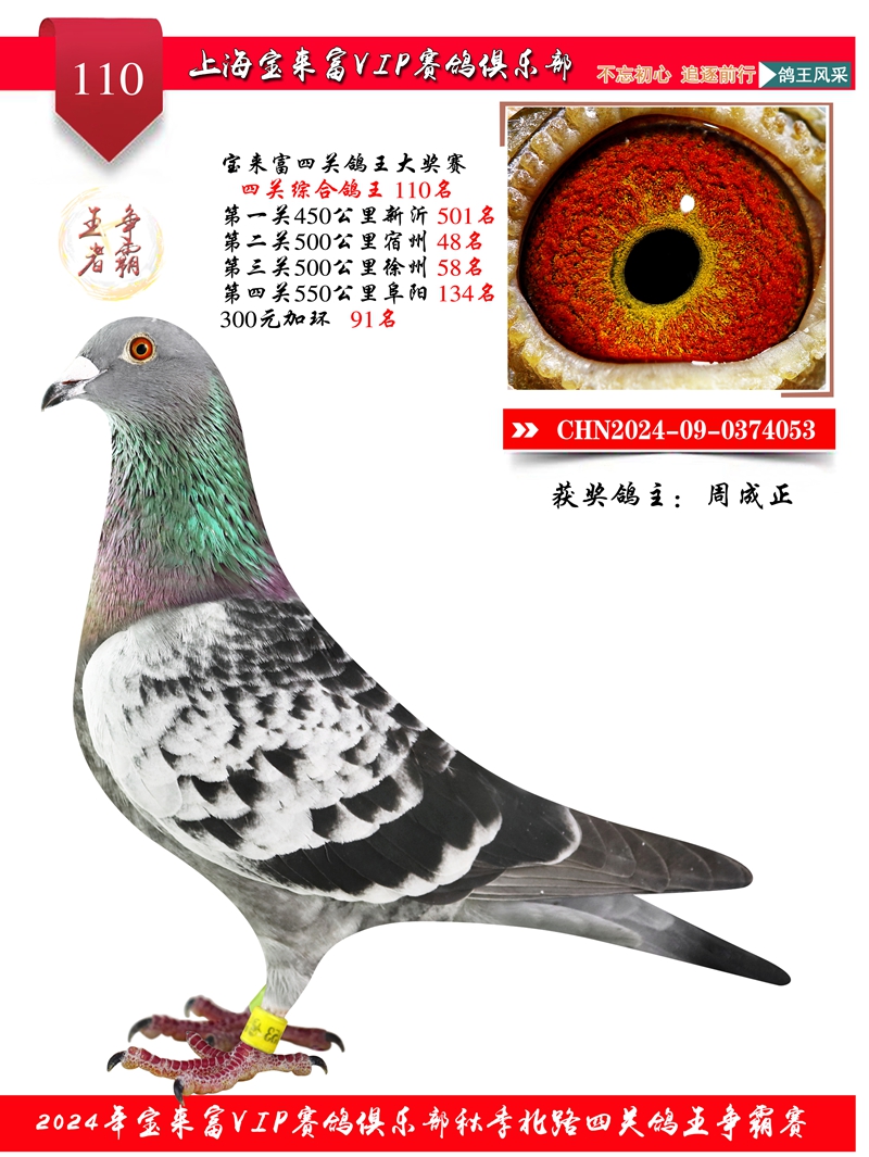 2024上海宝来富四关鸽王110名