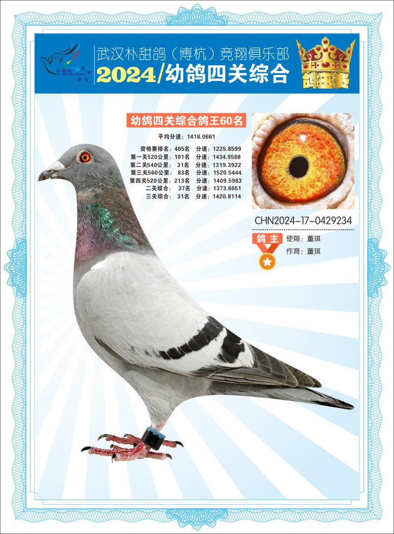 2024年武汉朴甜鸽[博杭]幼鸽四关综合鸽王60名