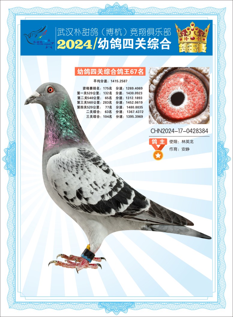 2024年武汉朴甜鸽[博杭]幼鸽四关综合鸽王67名