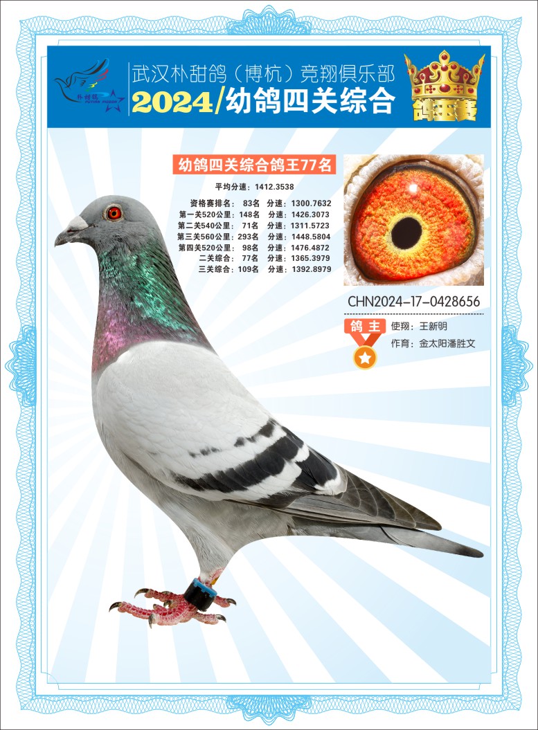2024年武汉朴甜鸽[博杭]幼鸽四关综合鸽王77名
