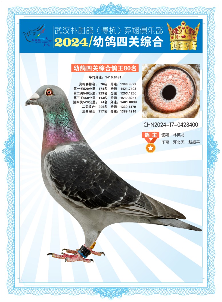 2024年武汉朴甜鸽[博杭]幼鸽四关综合鸽王80名