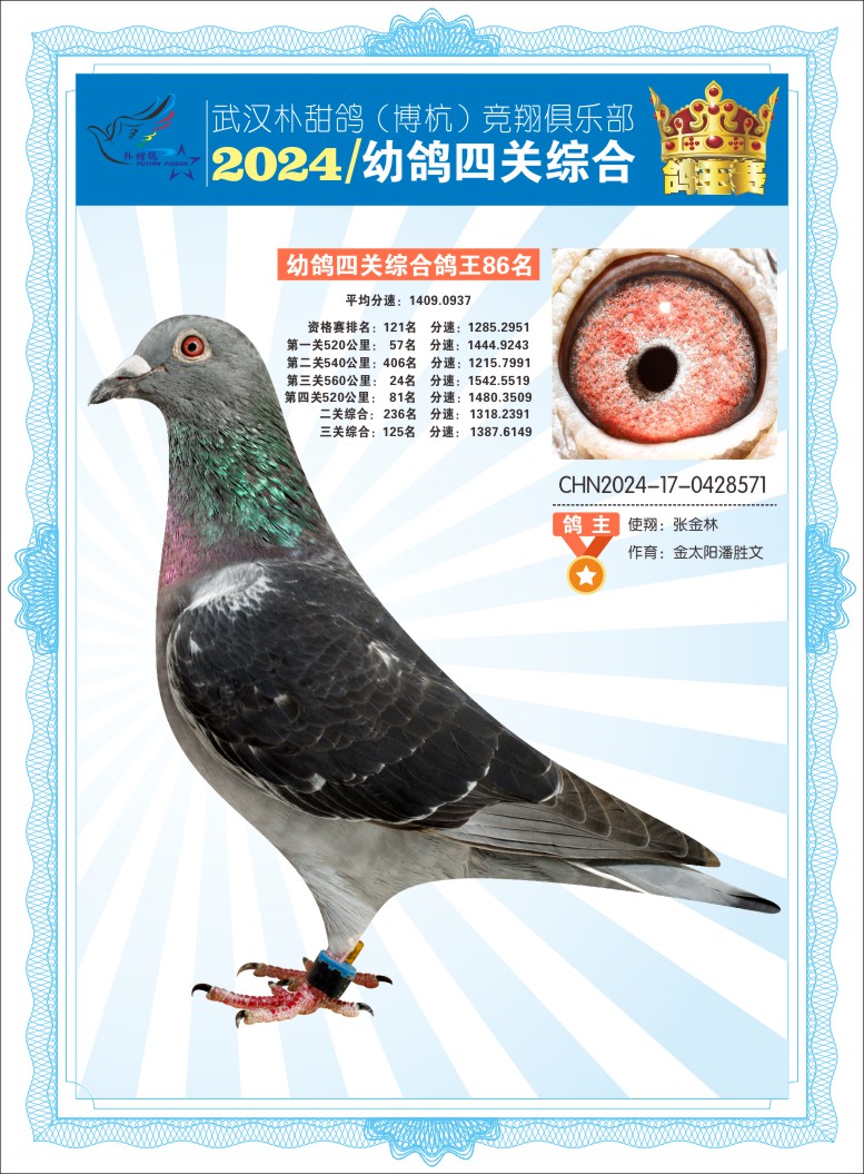 2024年武汉朴甜鸽[博杭]幼鸽四关综合鸽王86名