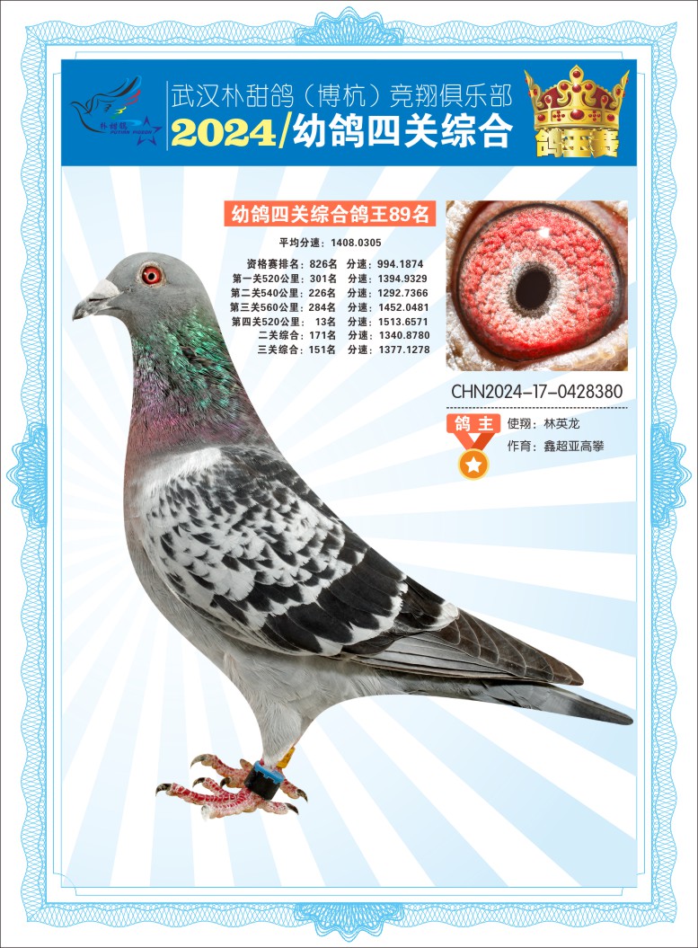 2024年武汉朴甜鸽[博杭]幼鸽四关综合鸽王89名