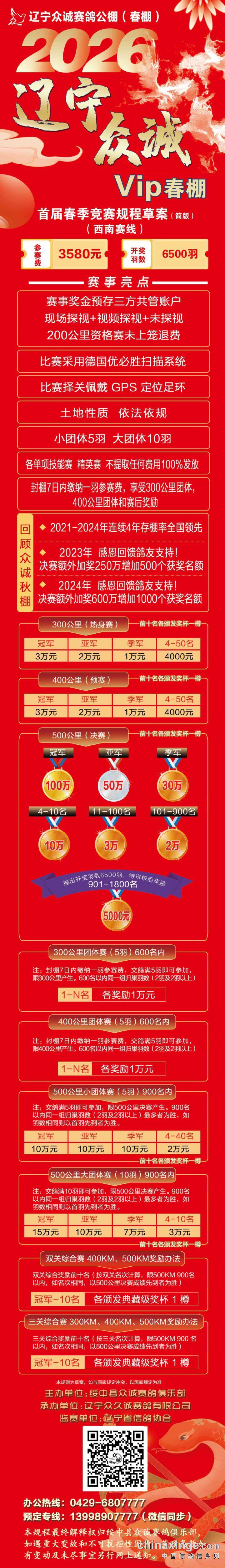2026年辽宁众诚赛鸽公棚(春棚)首届春季竞赛规程(简版)