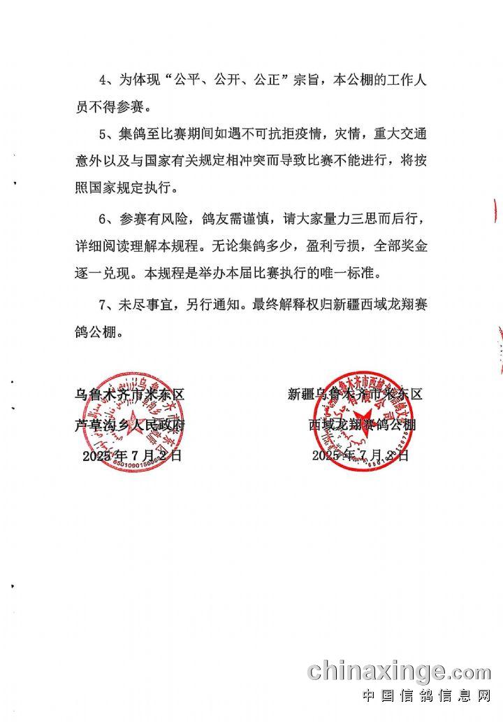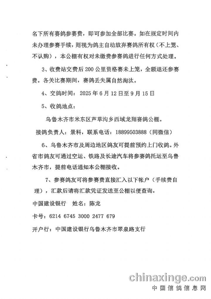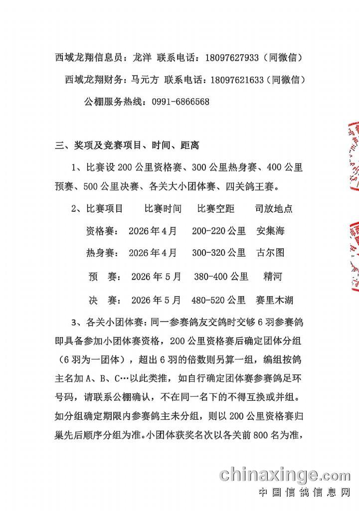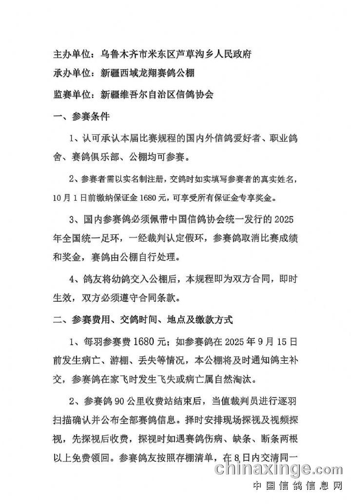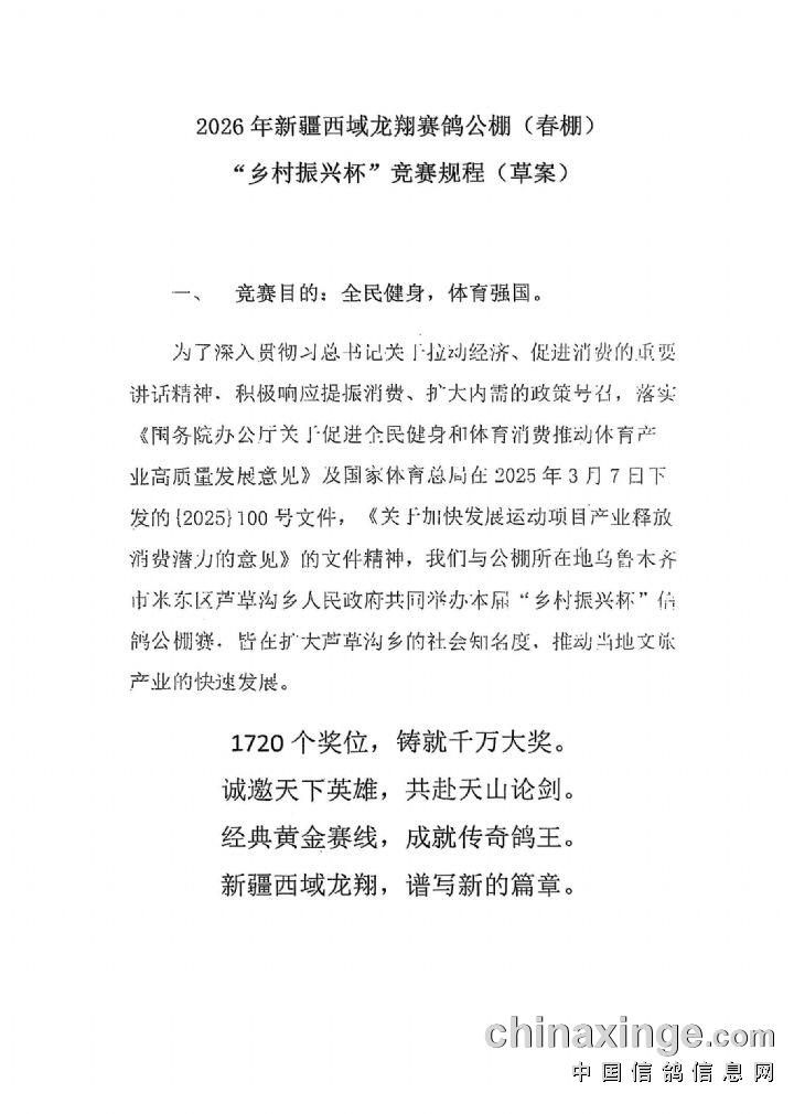 2026年新疆西域龙翔赛鸽公棚(春棚)“乡村振兴杯”竞赛规程(草