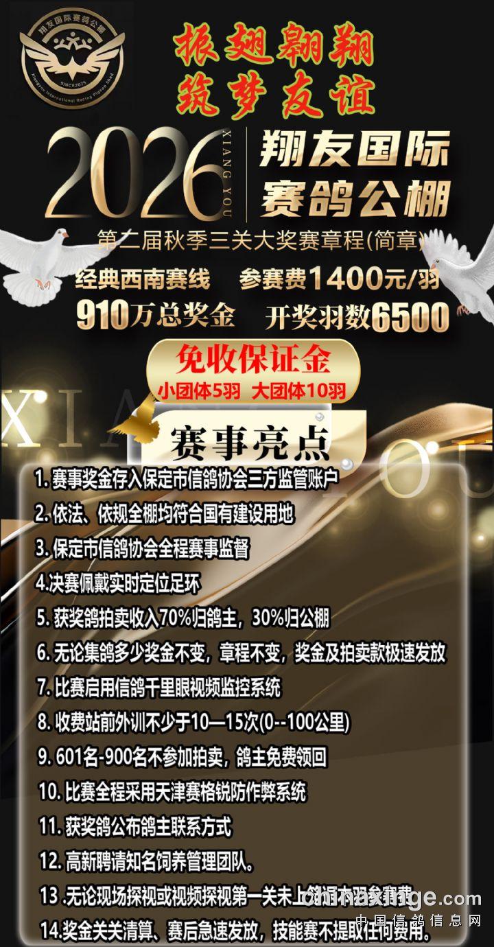 翔友国际赛鸽公棚2026年规程(草案)