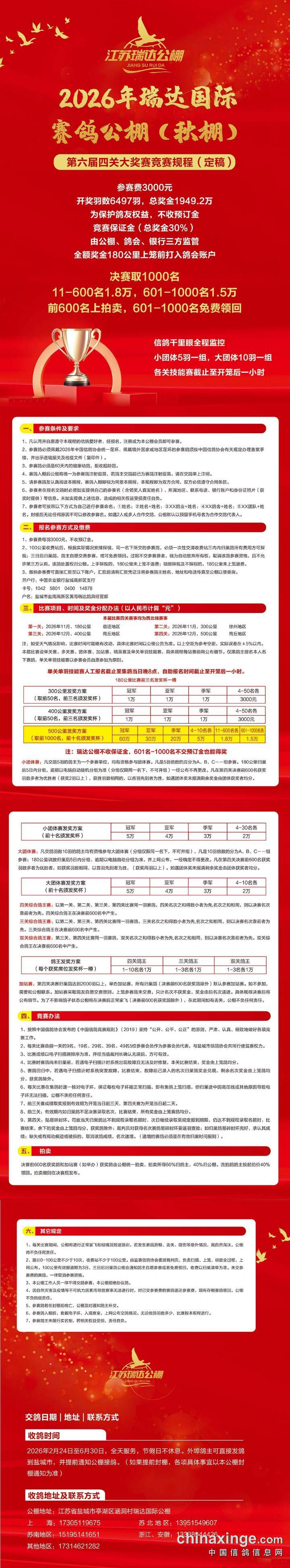 江苏瑞达(秋):2026年瑞达秋棚第六届秋季大奖赛竞赛规程