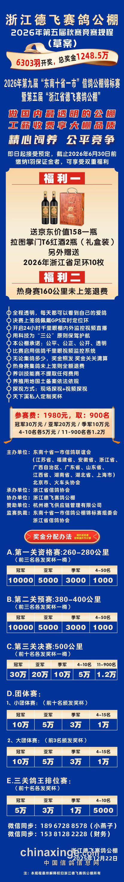 浙江德飞赛鸽公棚2026年第五届秋赛竞赛规程(草案)