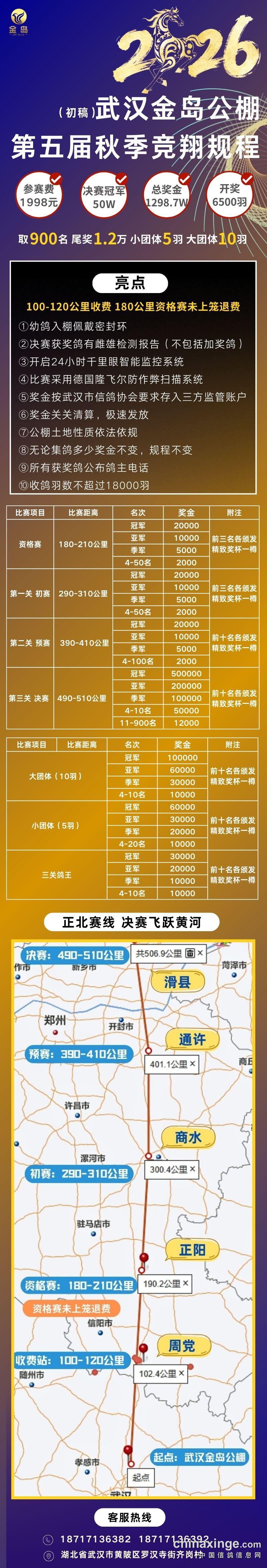 武汉金岛赛鸽公棚2026年信鸽竞翔赛规程(初稿)