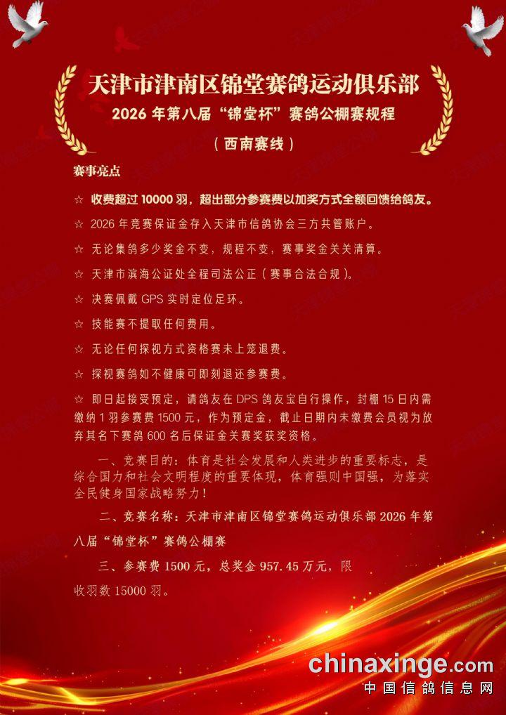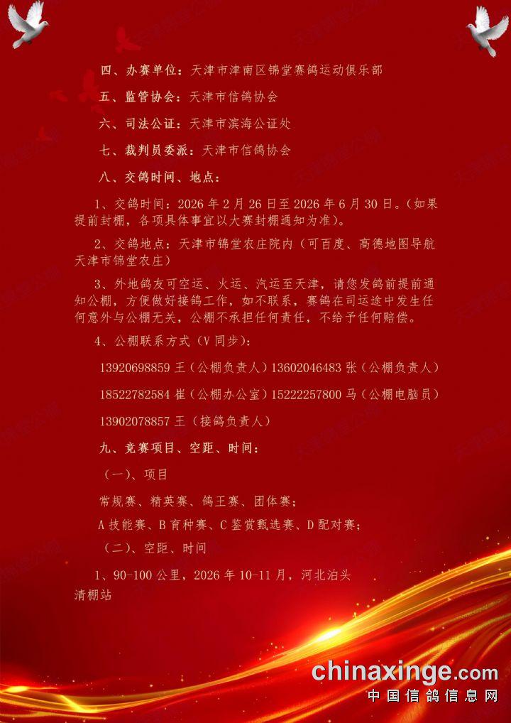 天津锦堂公棚2026年第八届秋赛规程(简版)