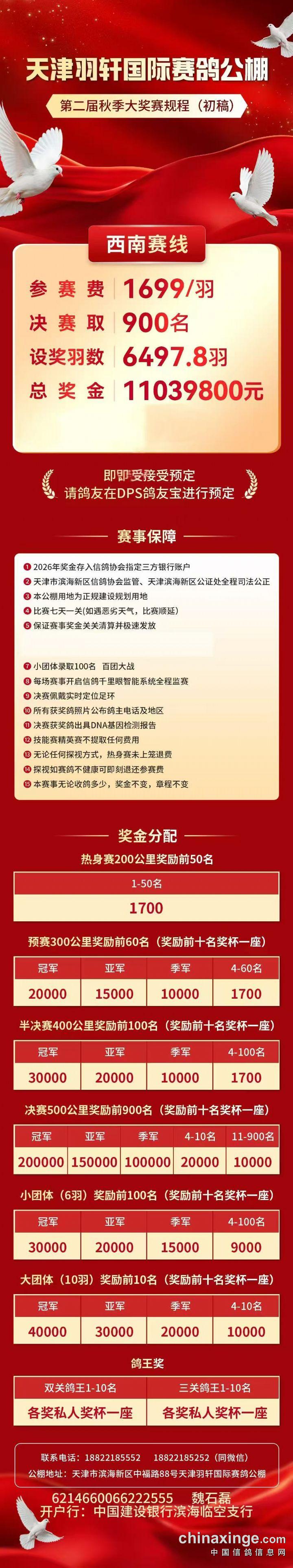 天津羽轩赛鸽公棚2026年秋季大奖赛(简章)