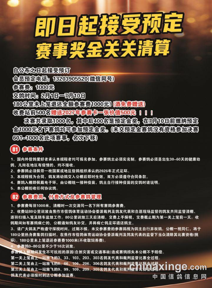 焦作鸿鹄公棚2026年秋季竞赛规程
