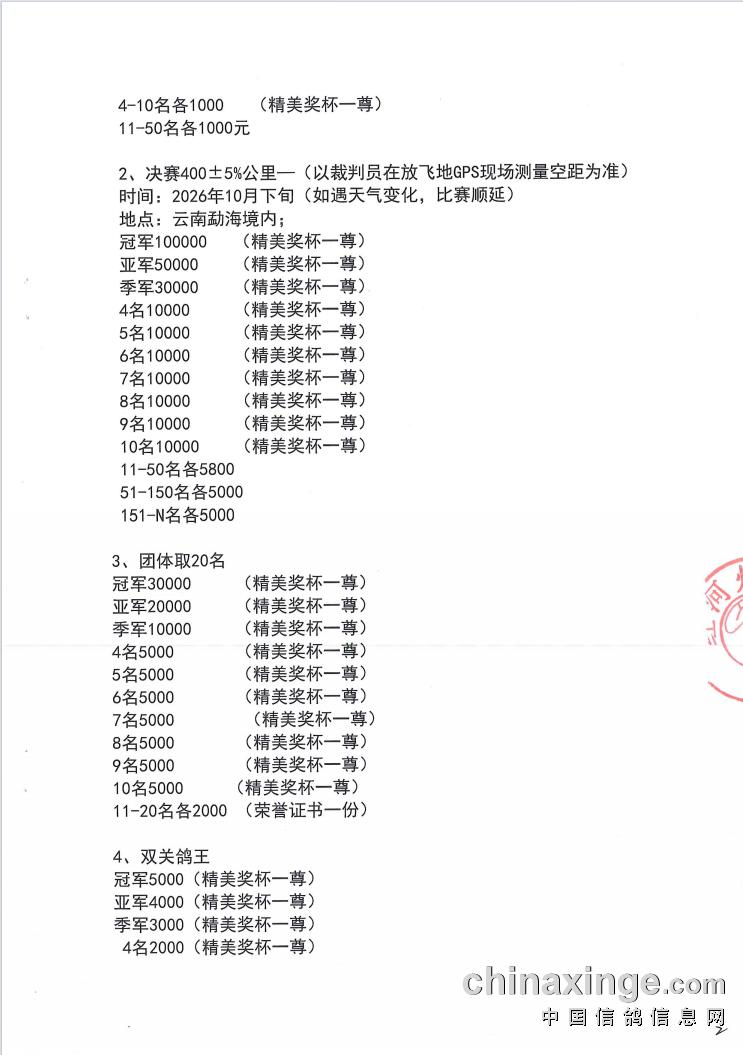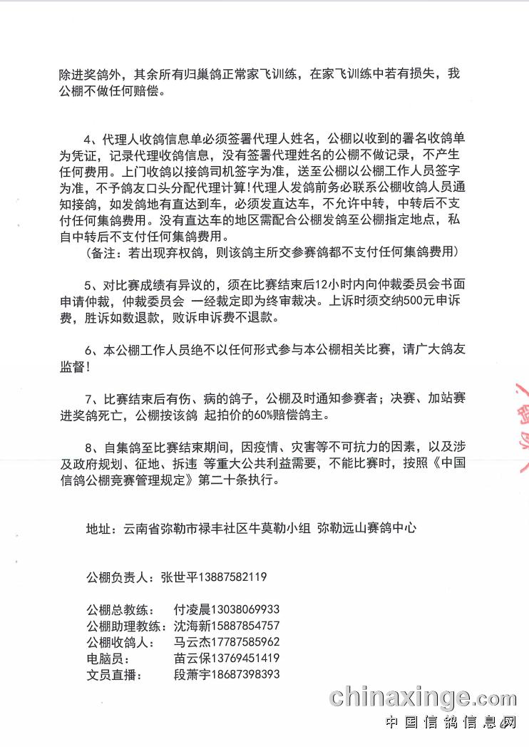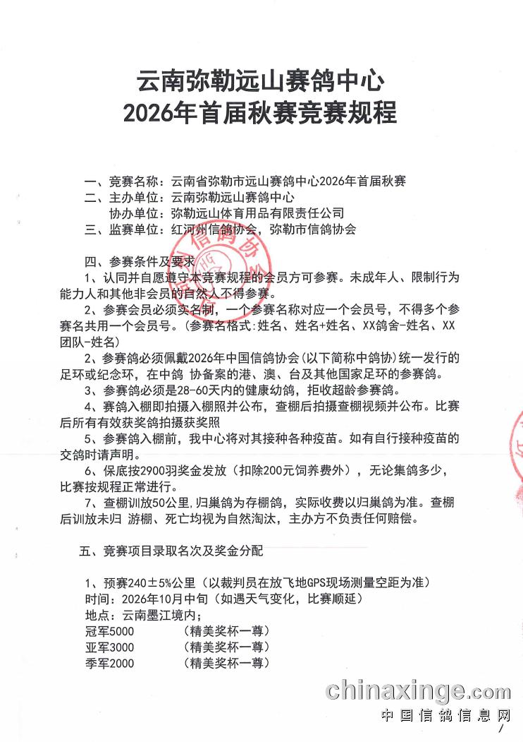 云南弥勒远山赛鸽中心2026年首届秋赛竞赛规程