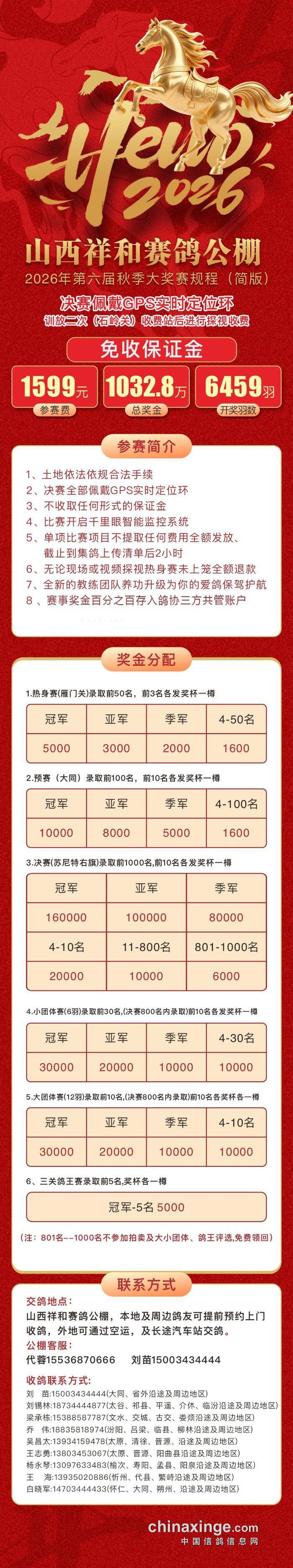 山西祥和赛鸽公棚2026年第六届秋季大奖赛规程(简版)