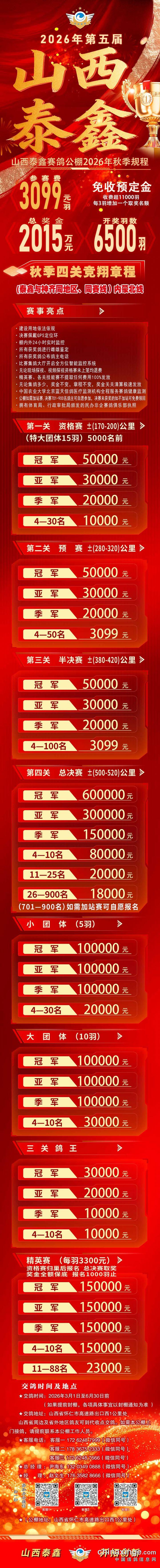 山西泰鑫赛鸽公棚2026年第五届秋季竞赛章程(北线)(简版初稿)