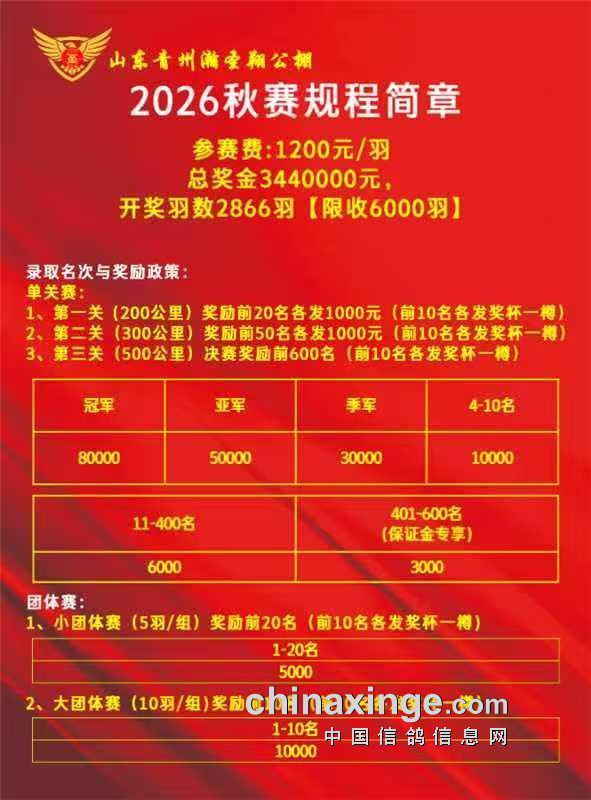 山东青州瀚圣翔公棚2026年第二届秋赛规程简章