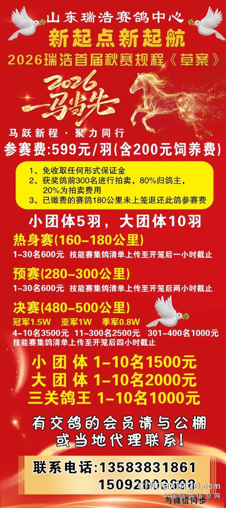 新泰市瑞浩赛鸽中心2026年首届秋季竞赛规程(简版草案)