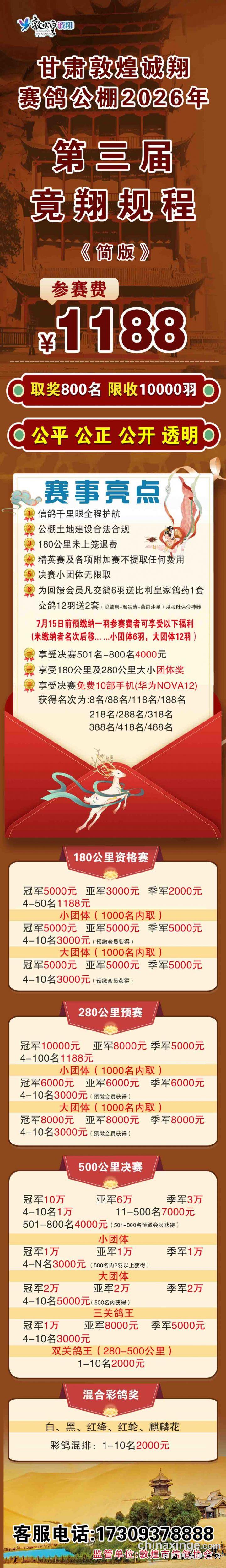 甘肃敦煌诚翔公棚2026竞翔规程(简版)