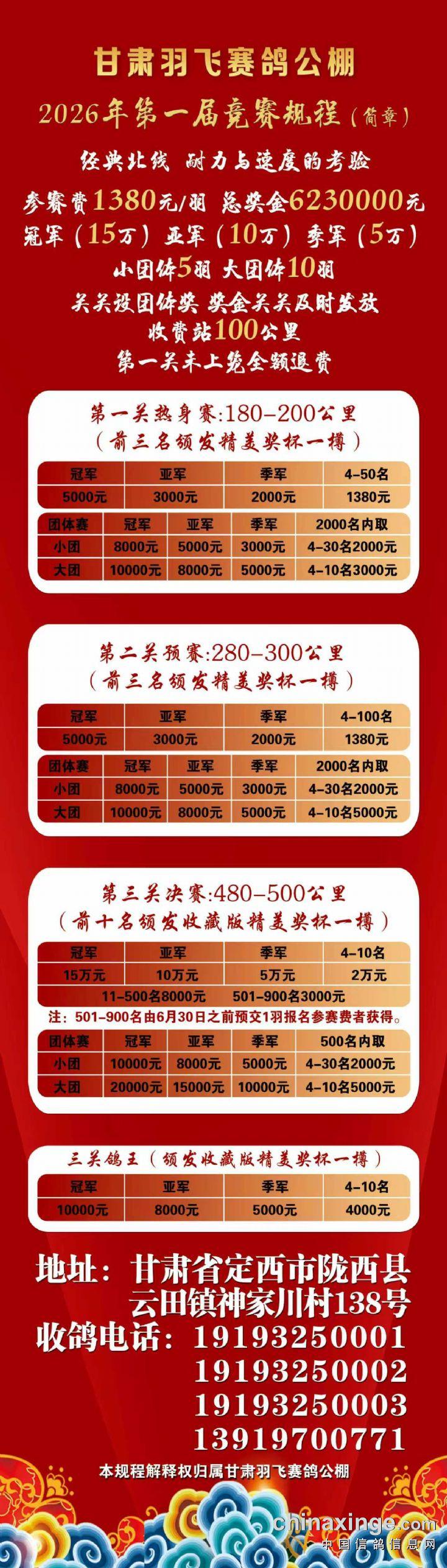 甘肃羽飞赛鸽公棚2026年第一届竞赛规程(简章)