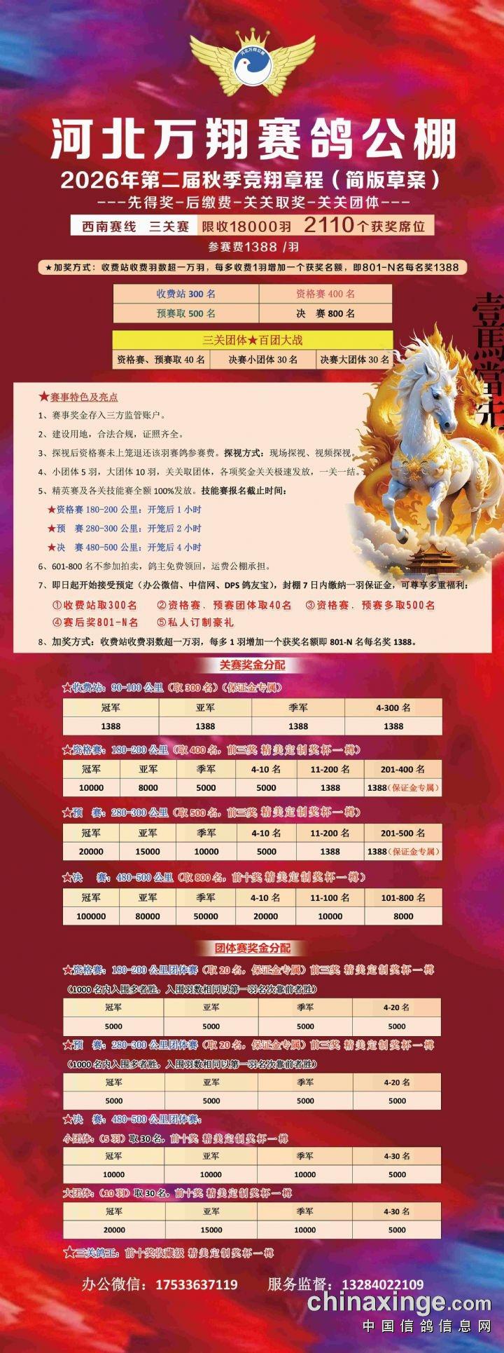 河北万翔公棚:2026年度第二届秋季竞翔章程