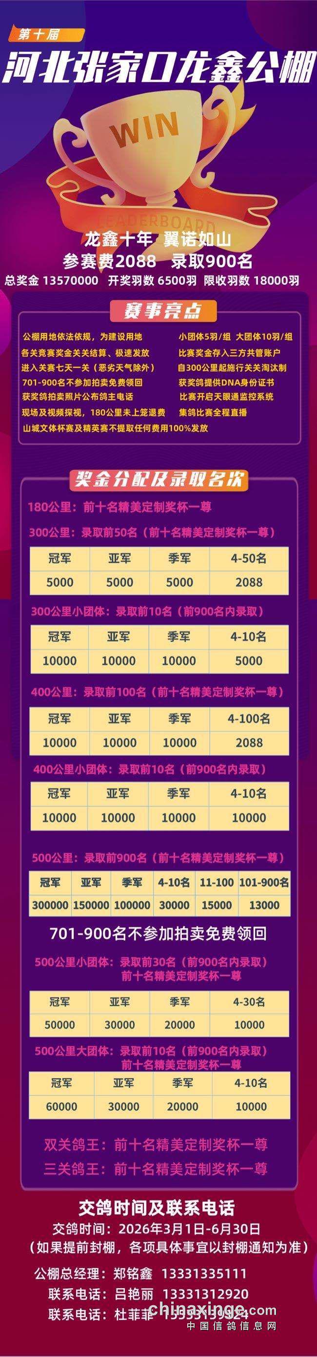 河北张家口龙鑫公棚2026年第十届秋季大奖赛规程简版