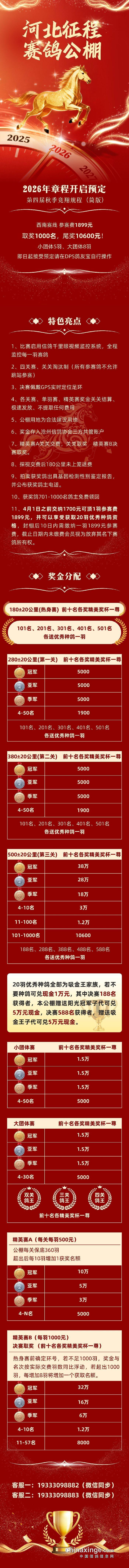 河北征程赛鸽公棚2026年第四届秋季竞翔规程简版