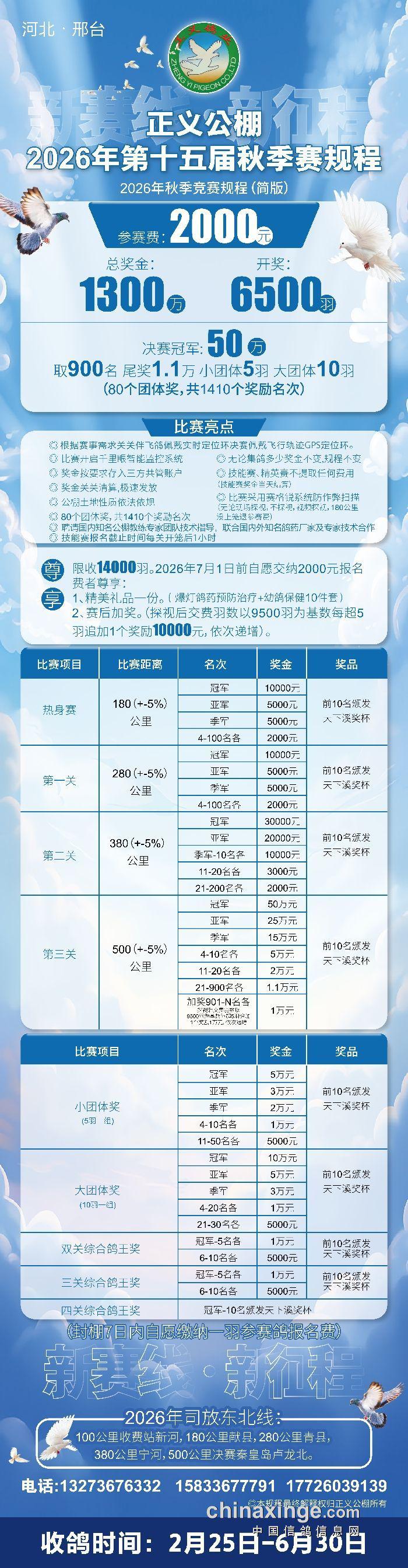 2026年河北正义赛鸽公棚(第十五届)秋季赛事规程简版