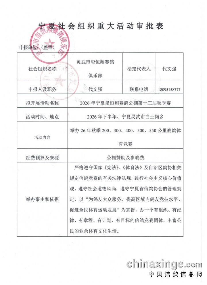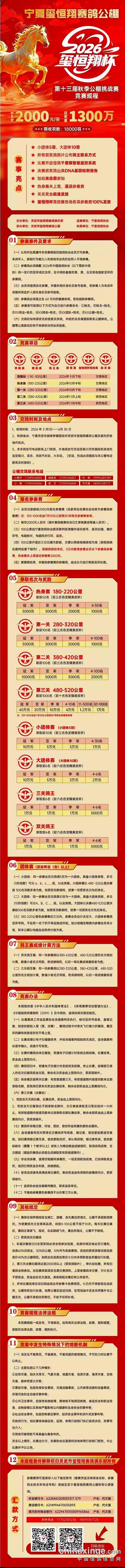 2026宁夏玺恒翔赛鸽公棚第十三届(秋季赛)竞赛规程