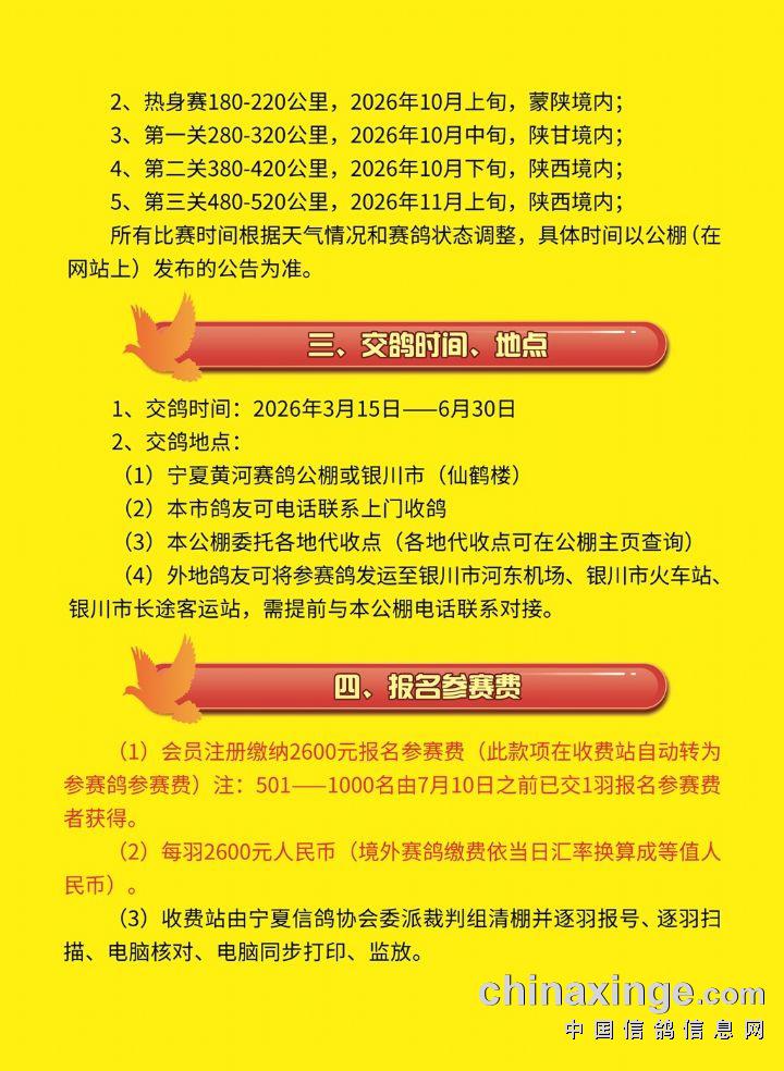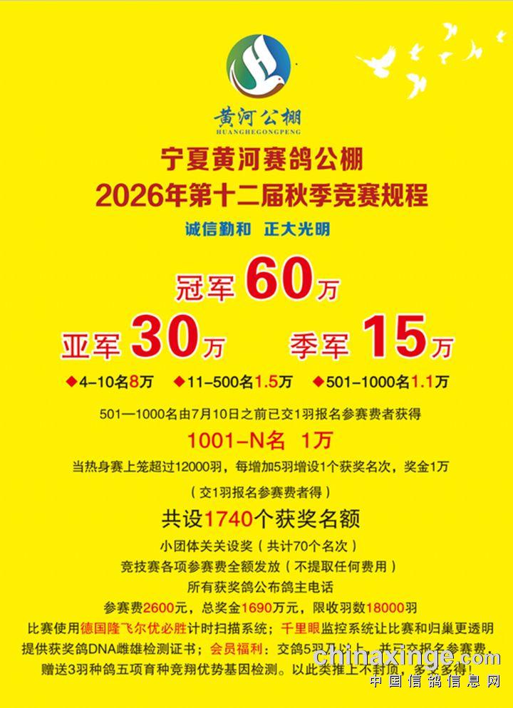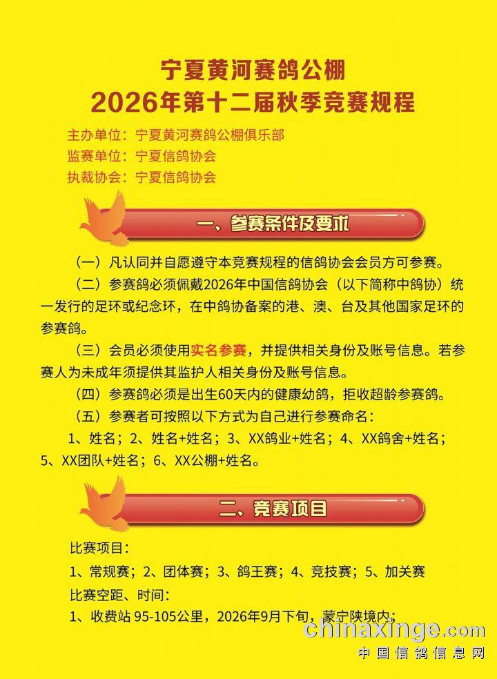宁夏黄河赛鸽公棚2026年第十二届秋季竞赛规程(草案)