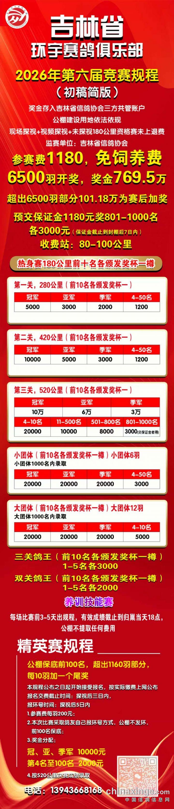 吉林环宇赛鸽俱乐部2026年第六届竞赛规程