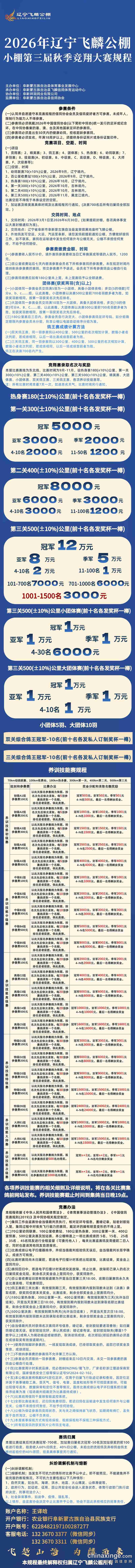 2026年辽宁飞麟公棚小棚第三届秋季竞翔大赛规程