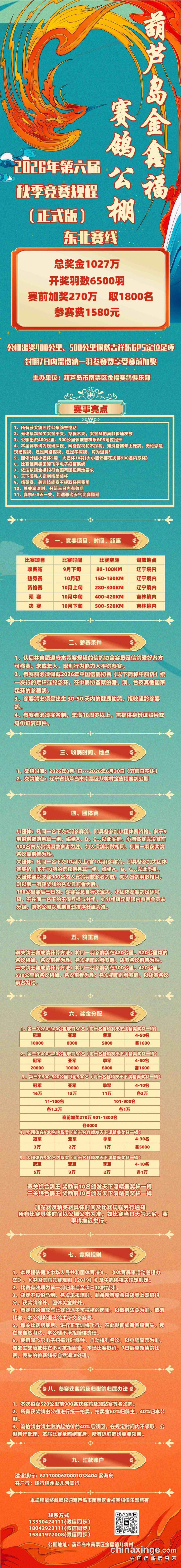 葫芦岛金鑫福赛鸽公棚2026年第六届秋季竞赛规程(正式版)