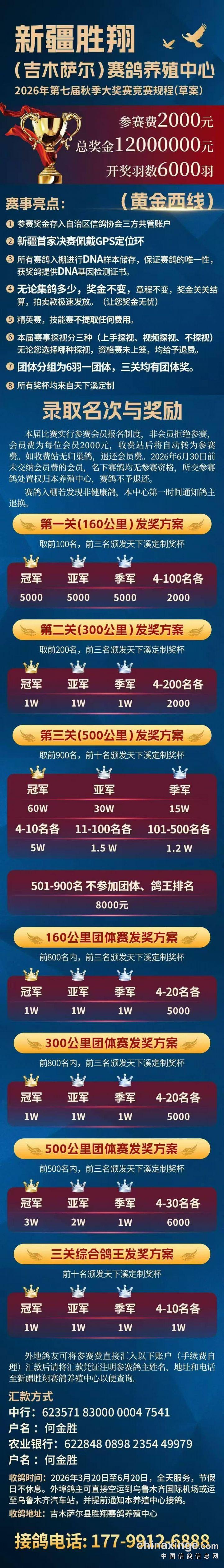 新疆胜翔赛鸽养殖中心2026年第七届秋季大赛规程
