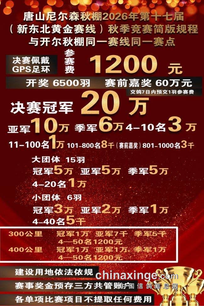 唐山尼尔森公棚2026年第十七届秋棚竞翔规程(简版)