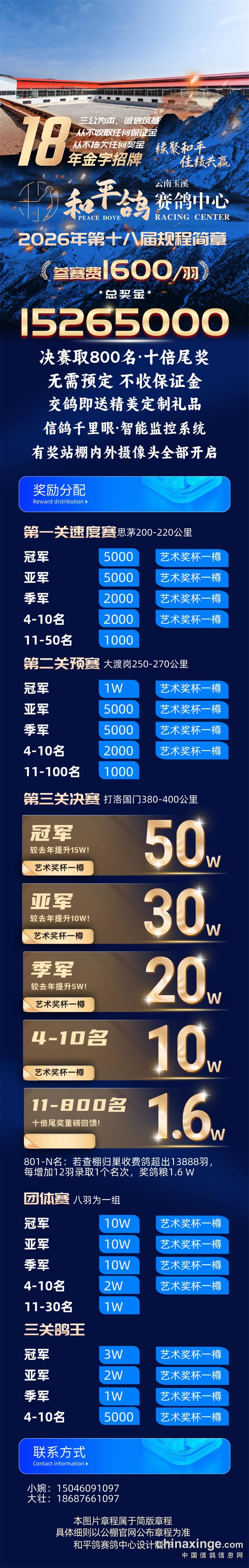 [规程]和平鸽2026第十八届竞赛规程(图片简章)