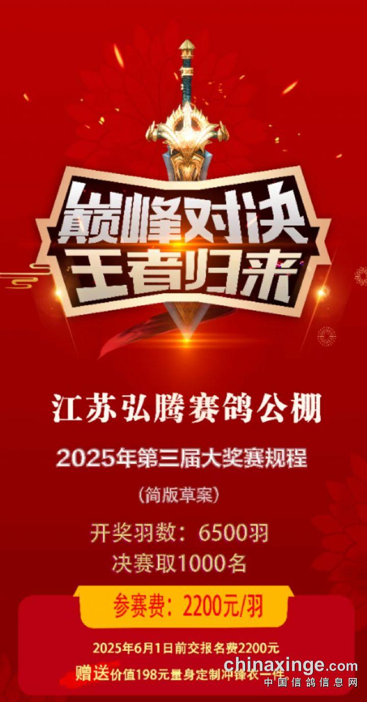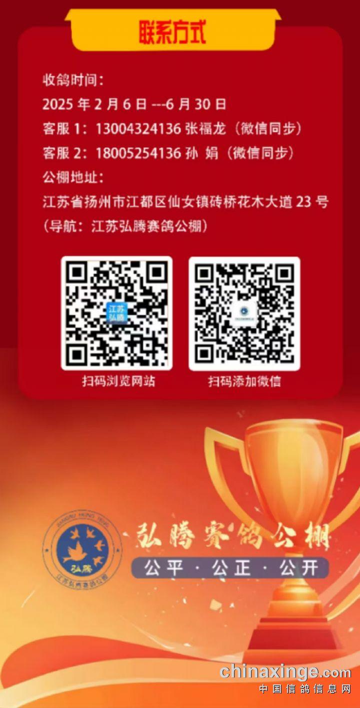 江苏弘腾赛鸽公棚:2025年赛事会员预定已开启!