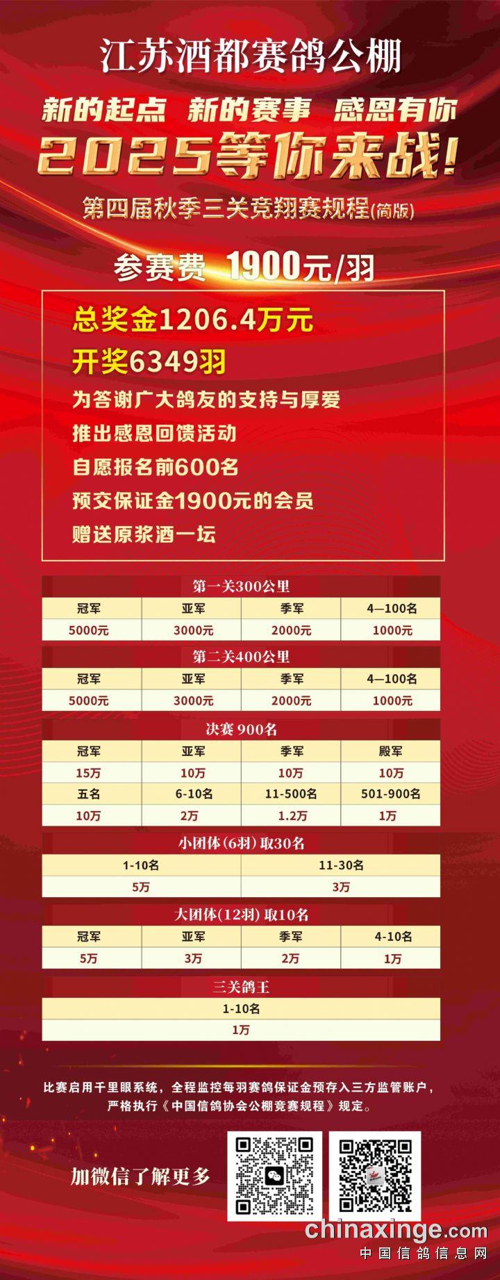 2025年江苏酒都赛鸽公棚秋季大奖赛简章