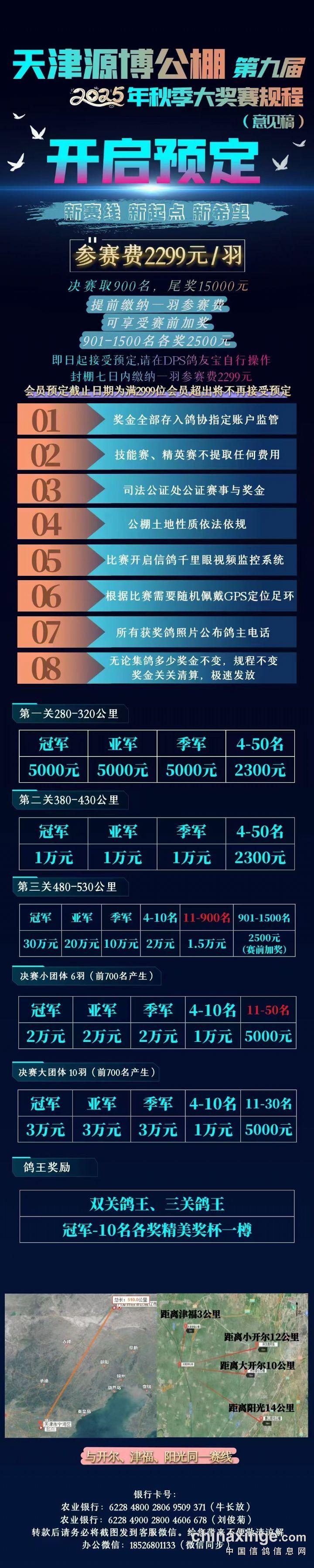 (提前交一羽参赛费,可享受901-1500名加奖)