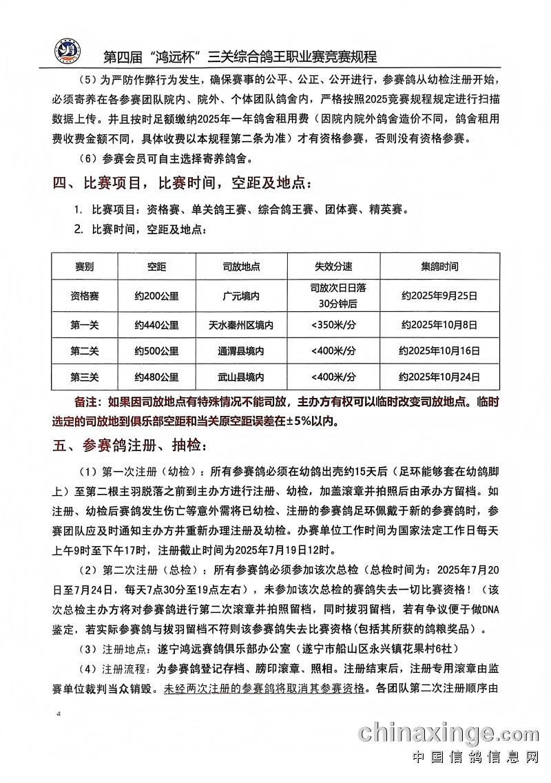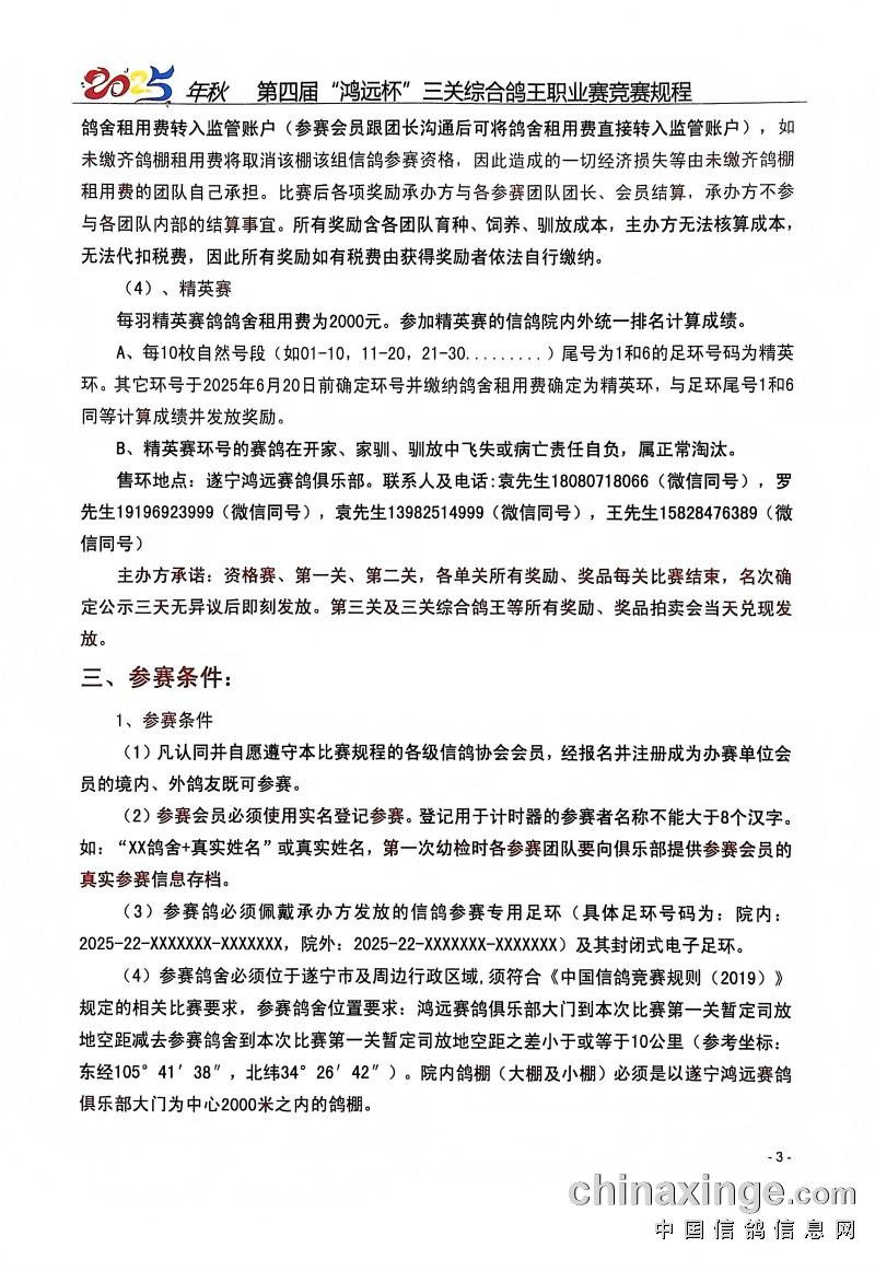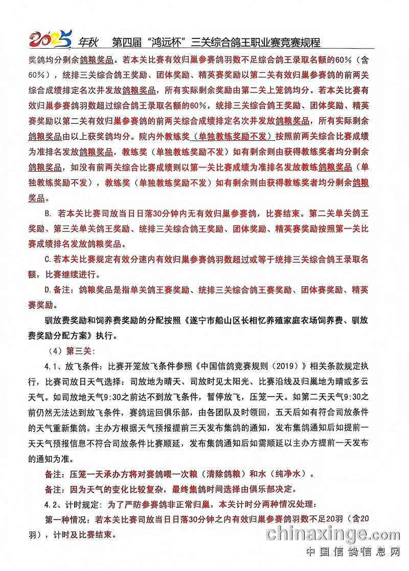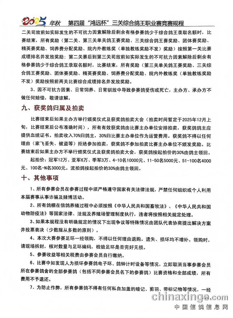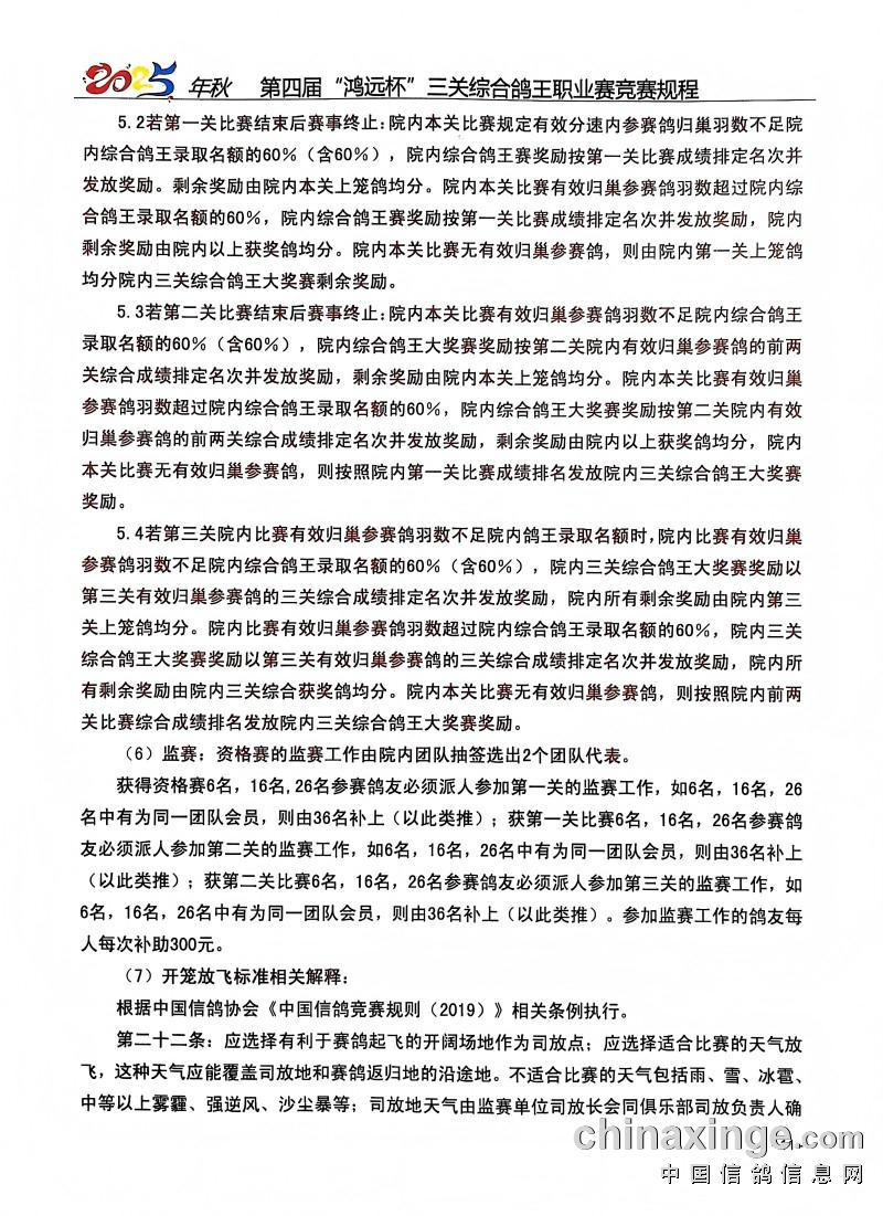 2025年秋第四届“鸿远杯”三关综合鸽王职业赛竞赛规程