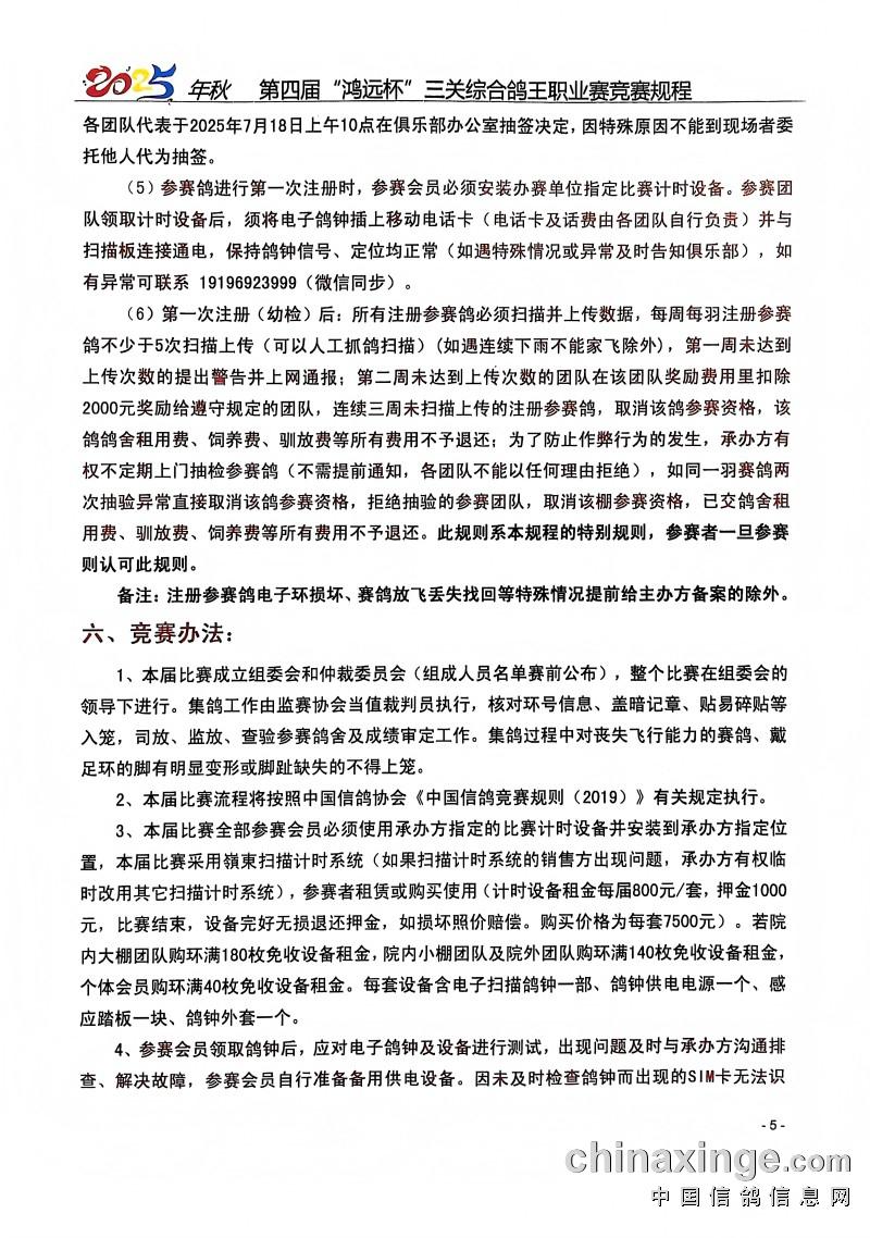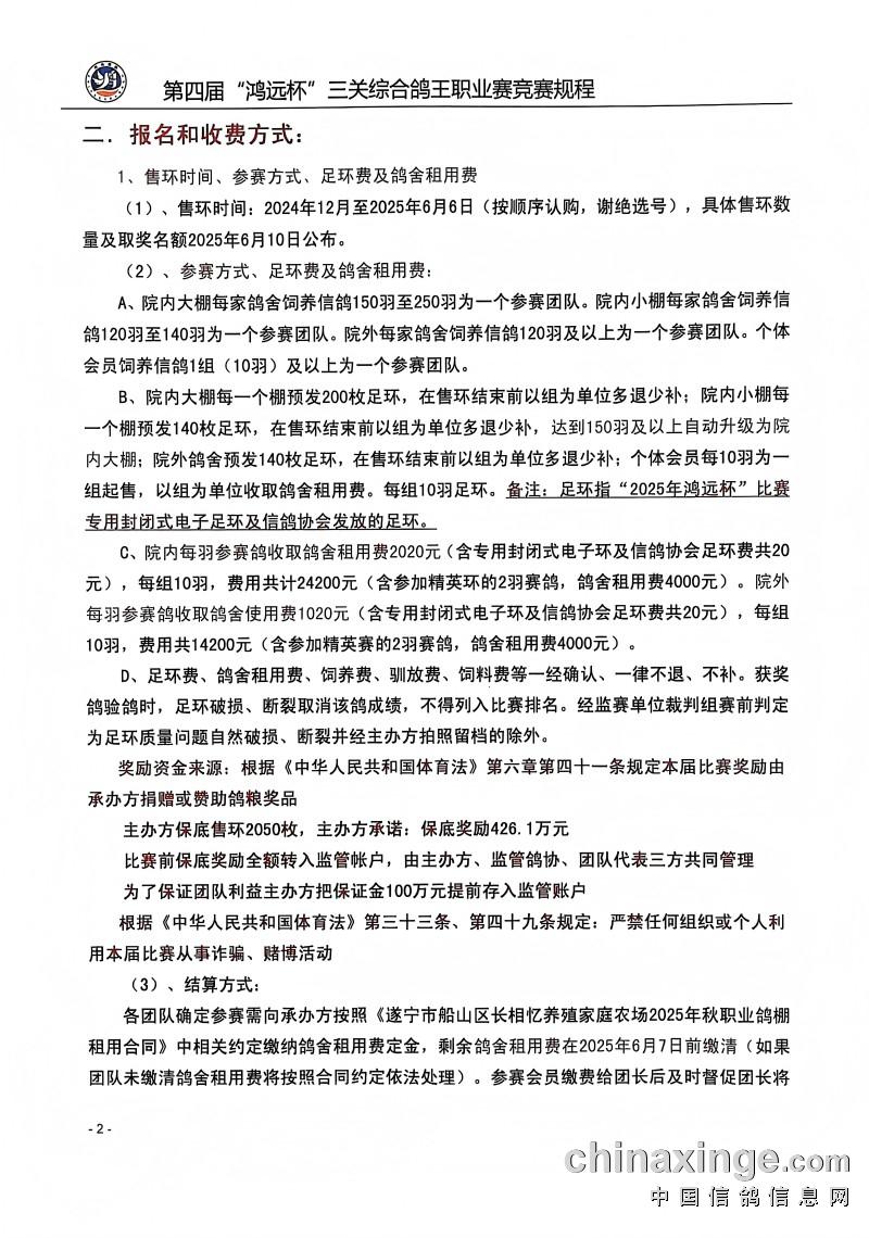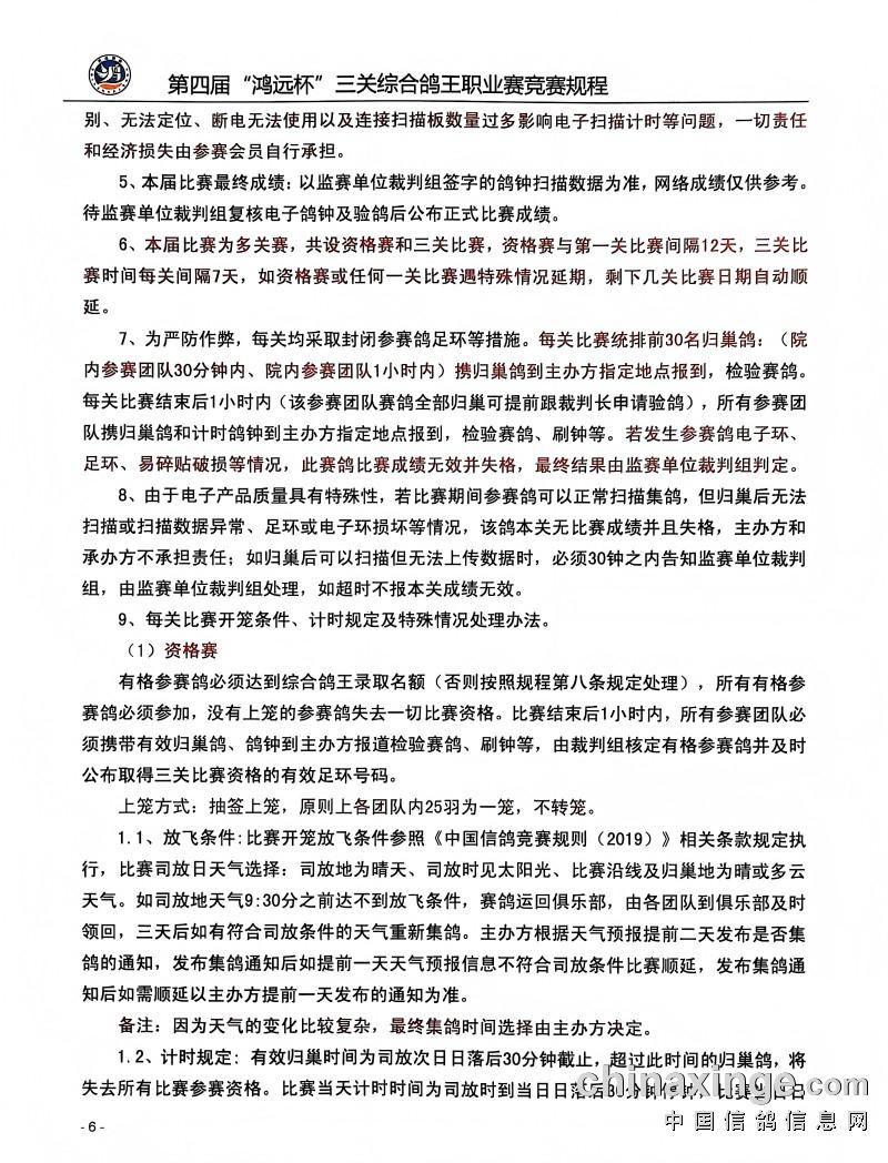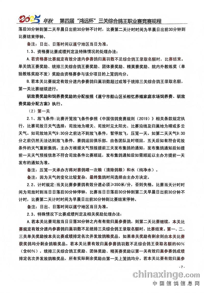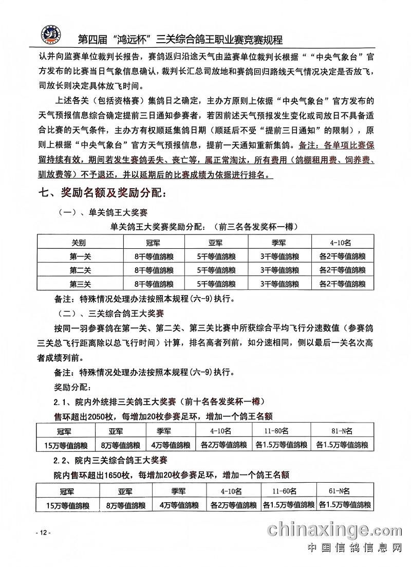 2025年秋第四届“鸿远杯”三关综合鸽王职业赛竞赛规程