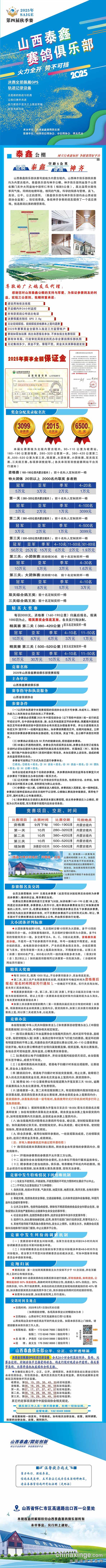 山西泰鑫赛鸽公棚2025年竞赛规程(简版)