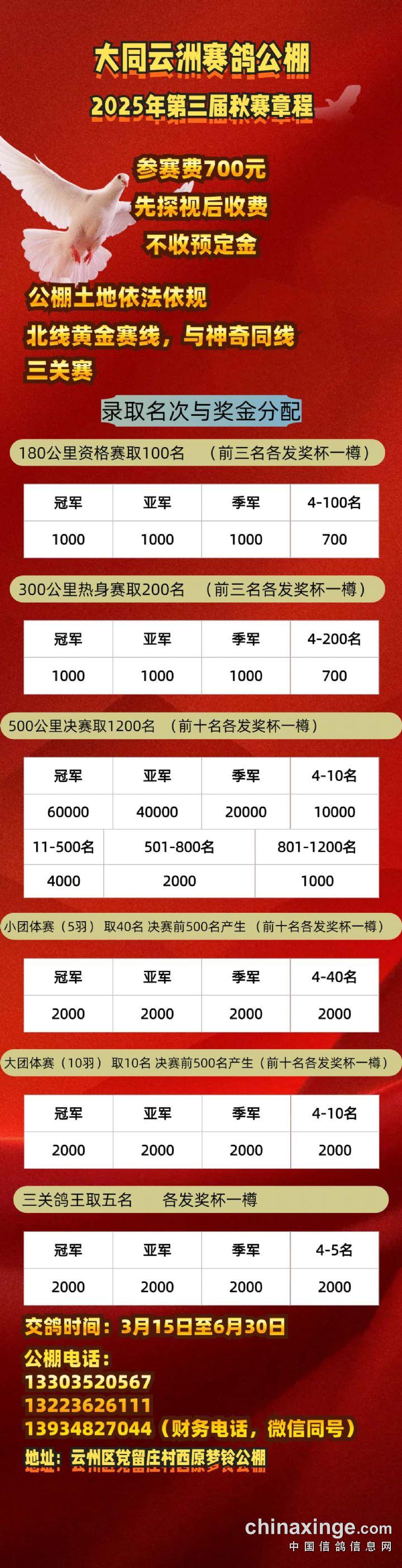大同云洲公棚2025年第三届秋赛规程(简版)
