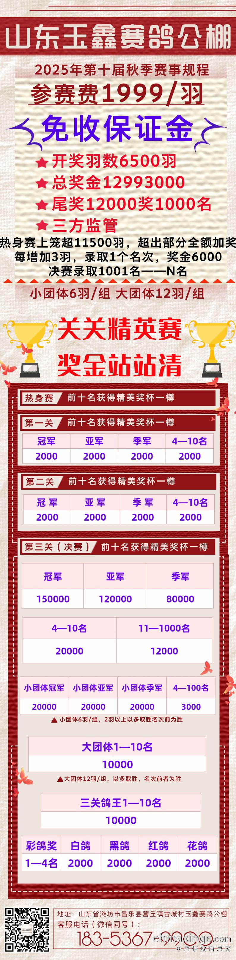 山东玉鑫赛鸽公棚2025年第十届秋季大奖赛竞赛规程