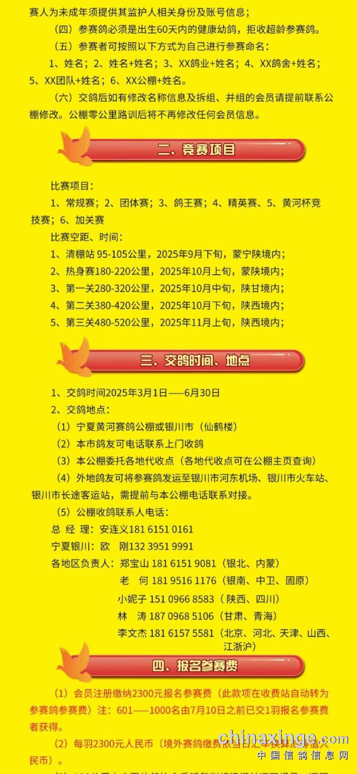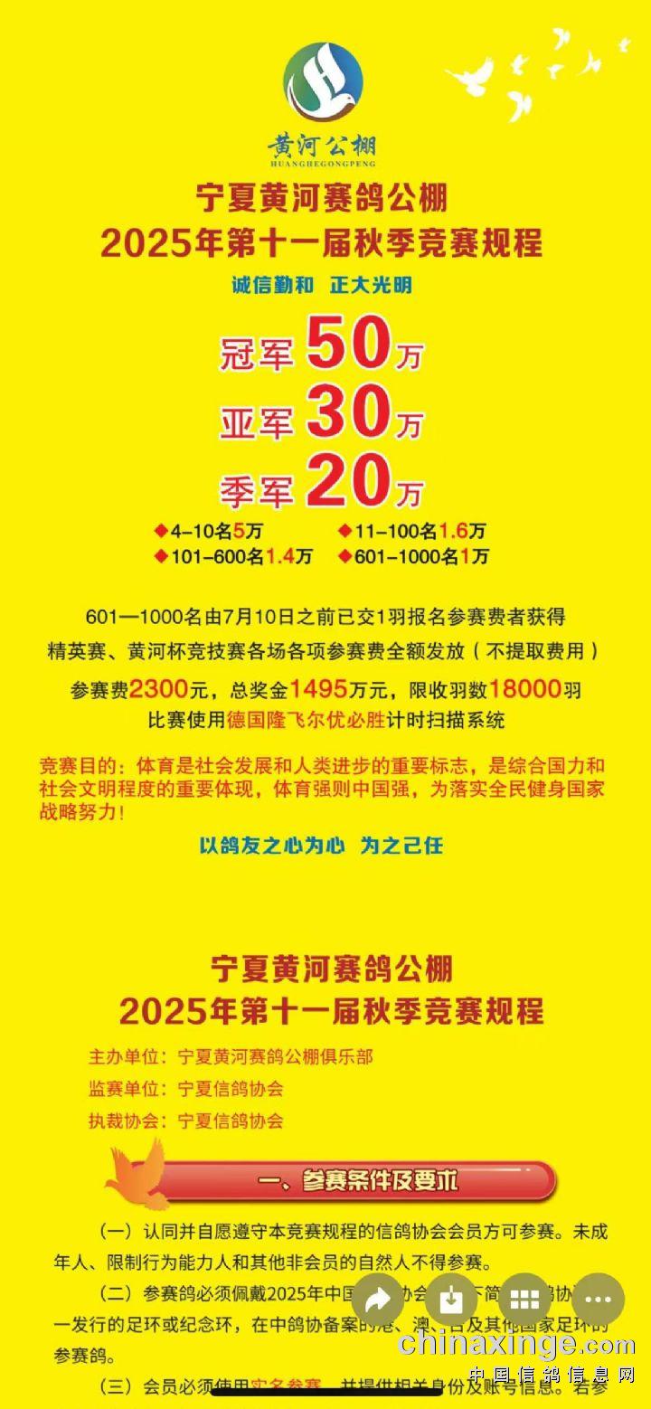 宁夏黄河赛鸽公棚2025年第十一届秋季竞赛规程(草案)