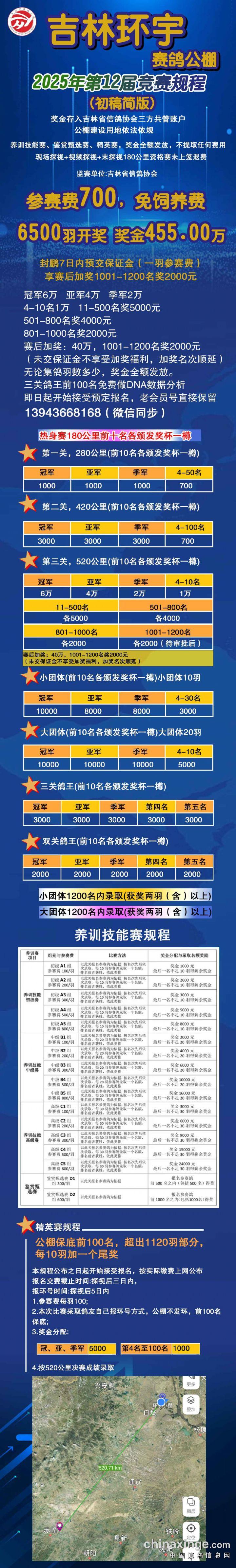吉林环宇赛鸽公棚2025年第12届竞赛规程(简版)