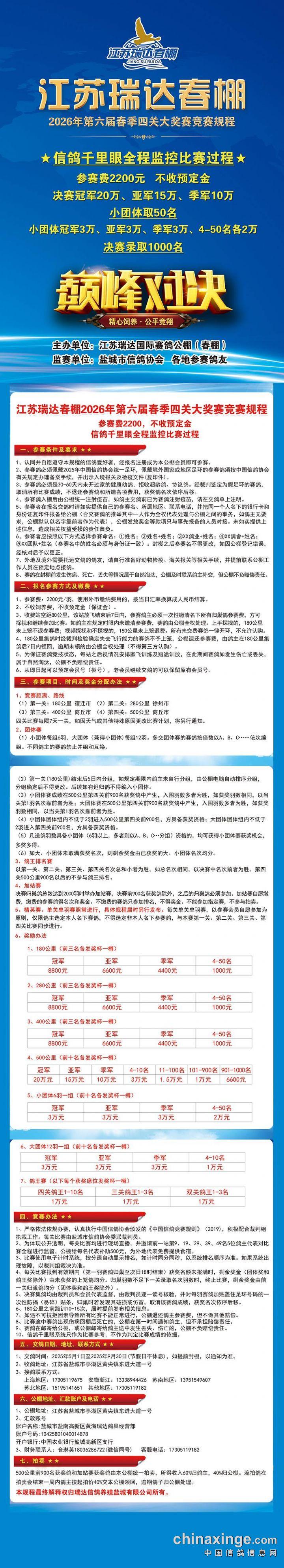 2026年江苏瑞达国际赛鸽公棚(春棚)第六届春赛四关大奖赛竞赛规