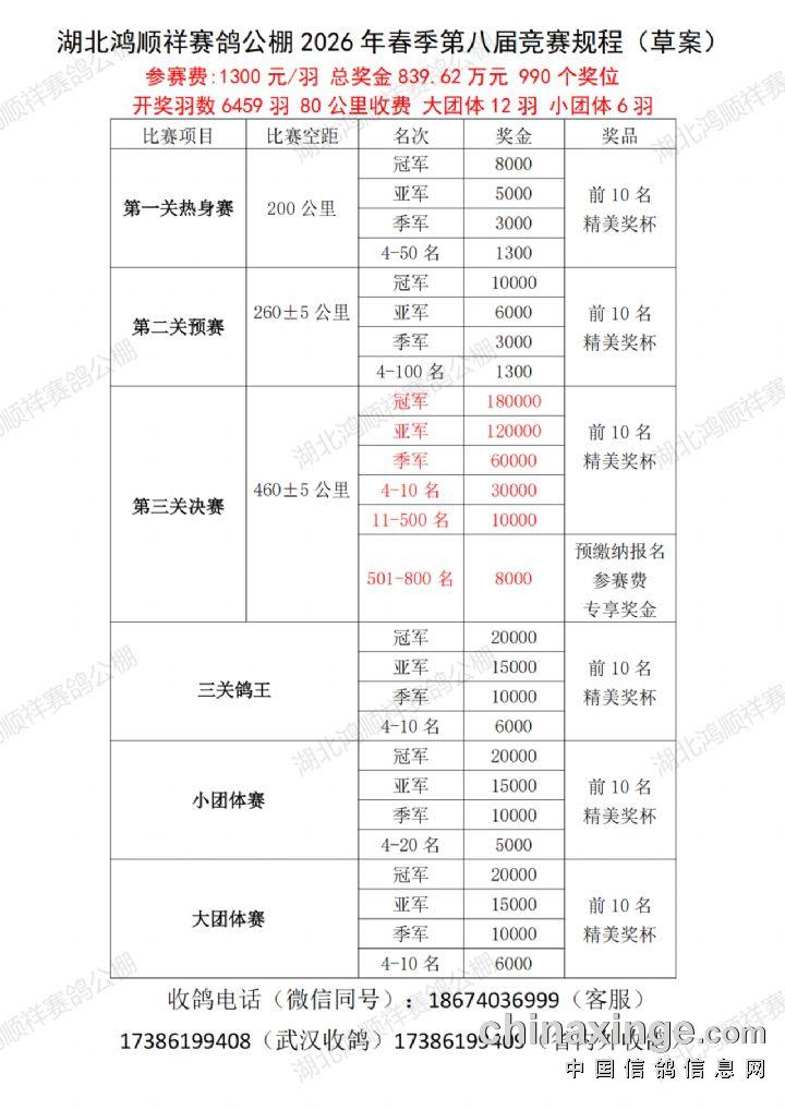 湖北鸿顺祥赛鸽公棚2026年第八届信鸽大奖赛竞赛规程(草案)